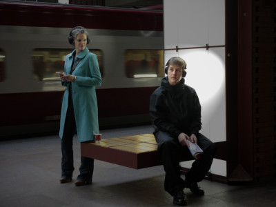 In Human Zoo, a voice can be heard through your headphones. It guides you as you walk through one of the most beautiful railway stations in Europe. In this gigantic building, located next to the Antwerp Zoo, where you can see gorillas, chimpanzees and orang-utans in their artificial habitats, you meet mankind. Behold homo sapiens in an honest and uninhibited
