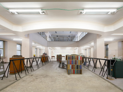 Circuit is an exhibition set in the old train museum inside Brussels-North railway station. Marina Pinsky proposes her own version of a museum in miniature in the form of a model-train installation connecting a complex of sculptures and scale models of buildings made by artists and architects. The artist has long been interested in model trains and the elaborate worlds that they recreate—the microcosmic and museological impulses at the heart of this practice. Running between the various contemporary and historical architectural models are elevated train tracks produced by the artist. These connect models of stations throughout Belgium which were previously housed on this site. Purposely integrating various styles and temporalities, of both realized and imagined architectural projects, _Circuit _aims to present many permutations of what a city can be.